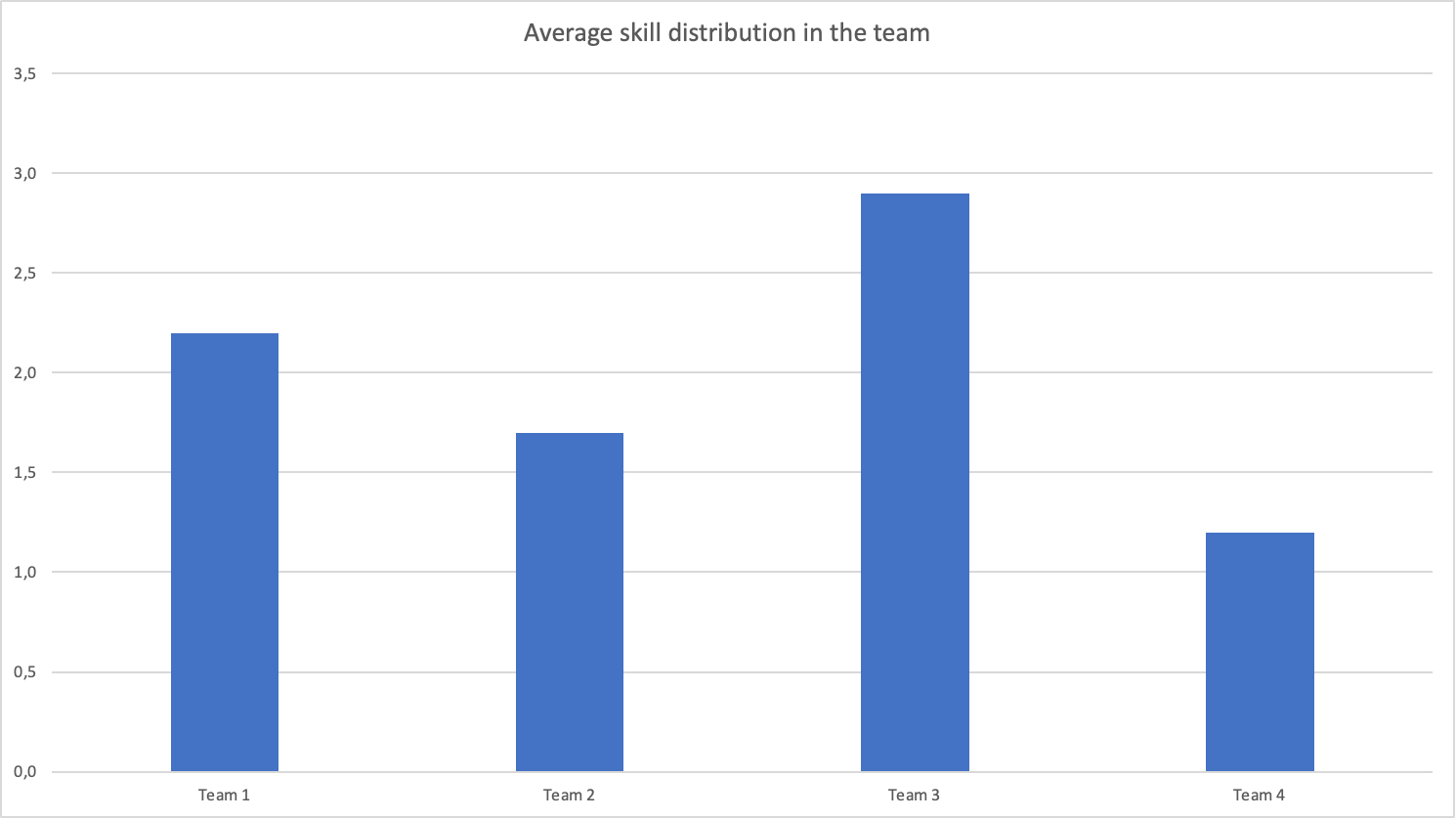 Then you will see that you can't take an employee from team №4 - it will hit them the hardest. But you can take an employee from team №3 - it will not affect the average skill level much, and the team will not lose so much in quality and speed.